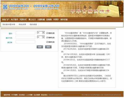 中华古籍保护计划的重要成果,目前在线发布的古籍影像资源包括:国家图书馆藏善本和普通古籍、法国国家图书馆藏敦煌遗书、天津图书馆藏普通古籍等,资源总量超过3.2万部...